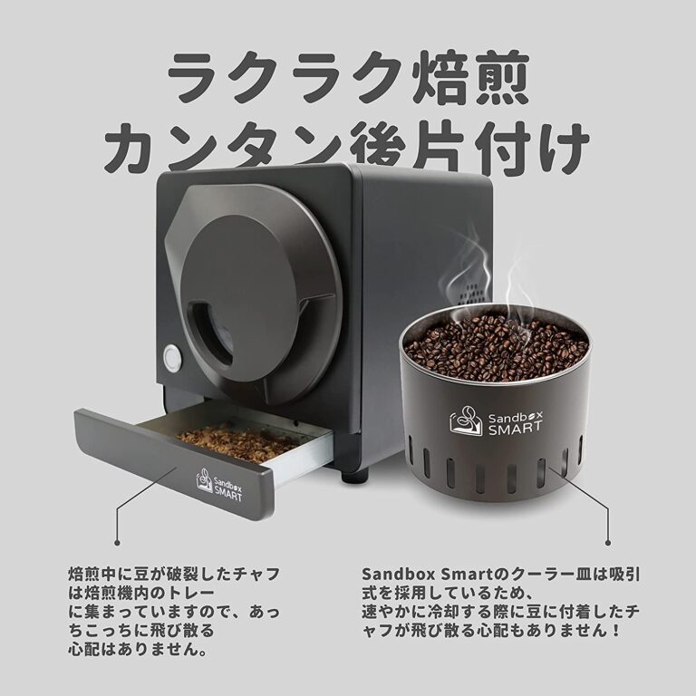 - イージートークリーン:シルバースキンの回収に便利な引き出しデザインと、冷却ストレーの優れた通気性により、すっきりとした焙煎を実現します。