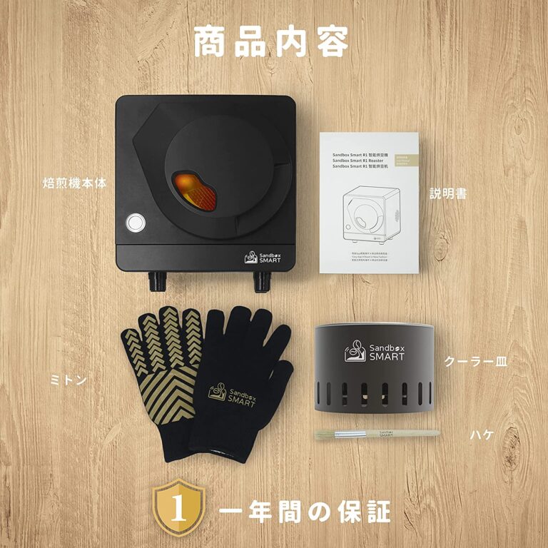 - 本来の風味や香りが守る: 家庭用の電熱式直火タイプのコーヒーロースターで、100グラムのバッチ容量で15分程度の焙煎時間で豊かな香りのコーヒーを作ることができます。